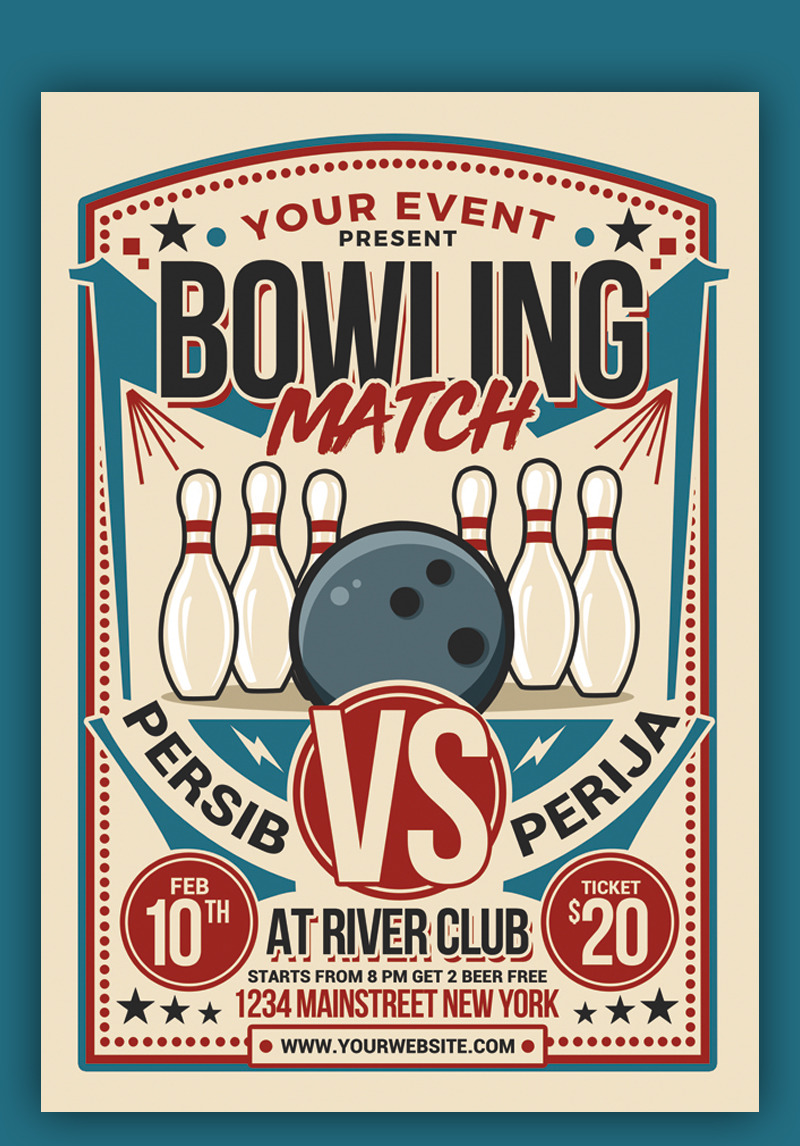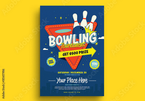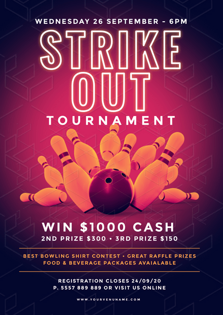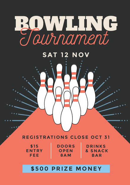 Bowling event flyer template. Children can play it and some bowling alleys would even place barriers around the gutter area so their bowling balls wouldnt fall out of bounds and would still hit the pins. You can title your flyer as some interesting bowling facts for bowling fans. Bowling tournament flyer template the purple ball looks gorgeous and altogether with the bowling pins and notes flying around this flyer creates an impression of a very exciting bowling competition. 9 bowling tournament flyer templates as mentioned in this articles introduction we have ten bowling tournament flyer templates for you to choose from and these templates were taken from various reliable websites.